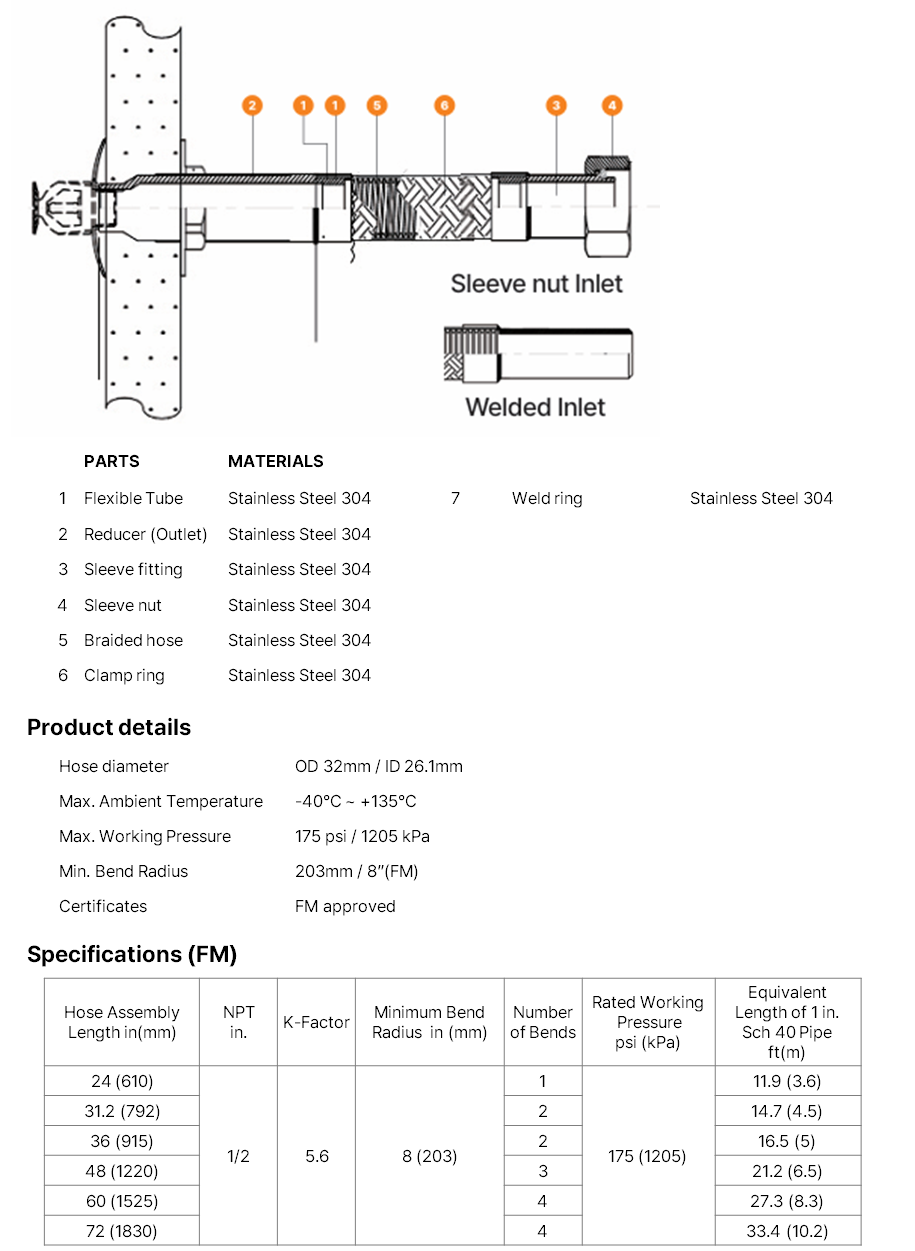 Flexible sprinkler drops for cleanroom installation